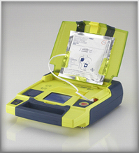The (automated external defibrillator) comes complete with RescueCoach and CPR metronome to pace chest compressions.
