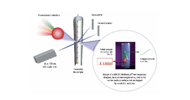 With this new system evaluation of several parameters in one single test is possible because encoded particles coated with antigen are used.