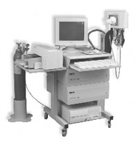 airways resistance. This method guarantees high accuracy, speed and repeatability of results and reduces the need of patient's co-operation. Lung test system uses a method of constant volume plethysmography. The device measures pressure changes initiated with movements of patient's chest. An accurate pneumatach headpiece and a fast flow closing valve constructed by MES, as well as a chamber with stable thermal parameters are components of a high class device. The software contains original algorithms compensating a change from ATP to BTPS without necessity of using breath bags.
